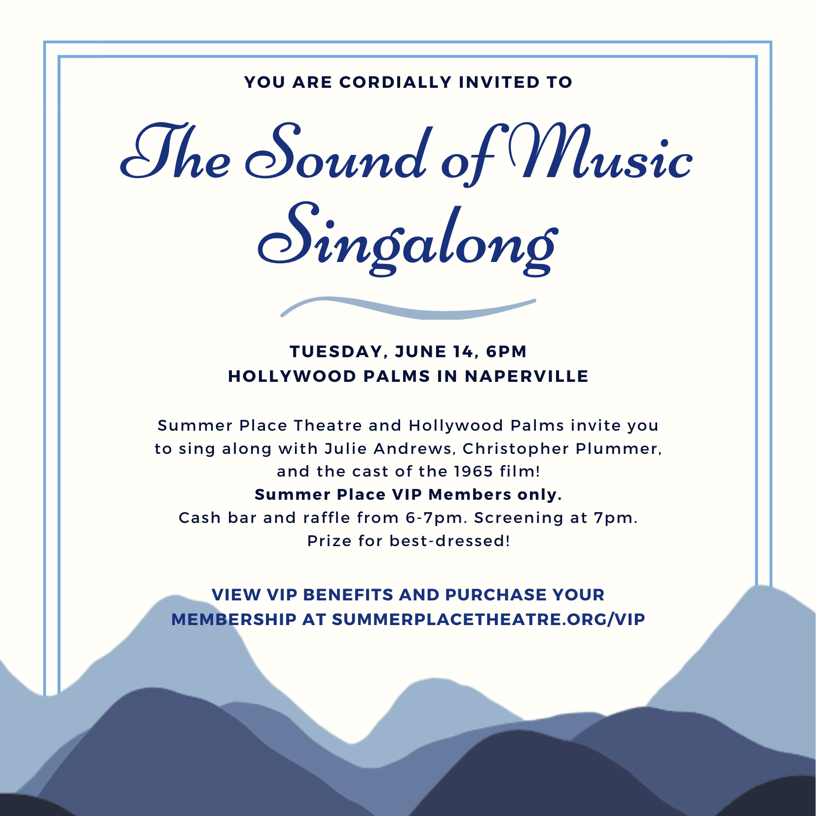 Don't miss the star-studded, red carpet event on Tuesday, June 14 at the Hollywood Palms. This is a VIP-ONLY event. Meet the cast, enjoy the cash bar from 6 to 7, peruse our raffle prizes, and then join us in the Wizard of Oz Theatre to watch the Julie Andrews - Christopher Plummer classic, with captions so you can yodel along!